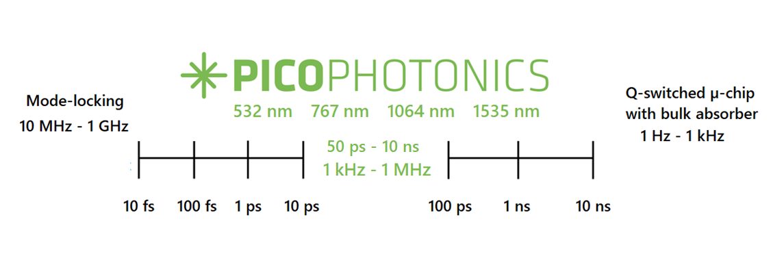 Picophotonics lasers are diode-pumped solid-state microchip (DPSS) lasers incorporating proprietary semiconductor saturable absorber mirror (SESAM) technology for passive Q-switching.